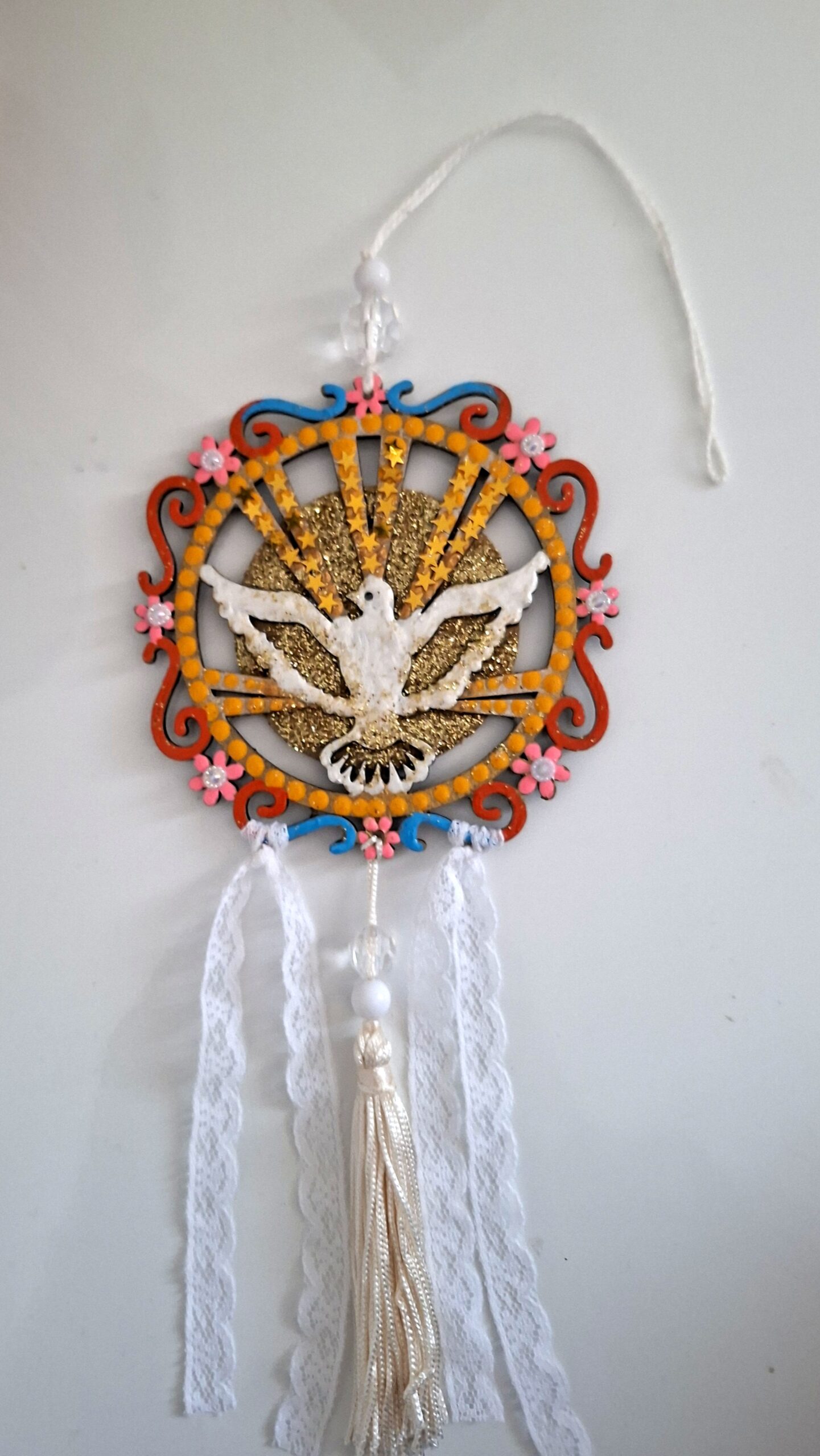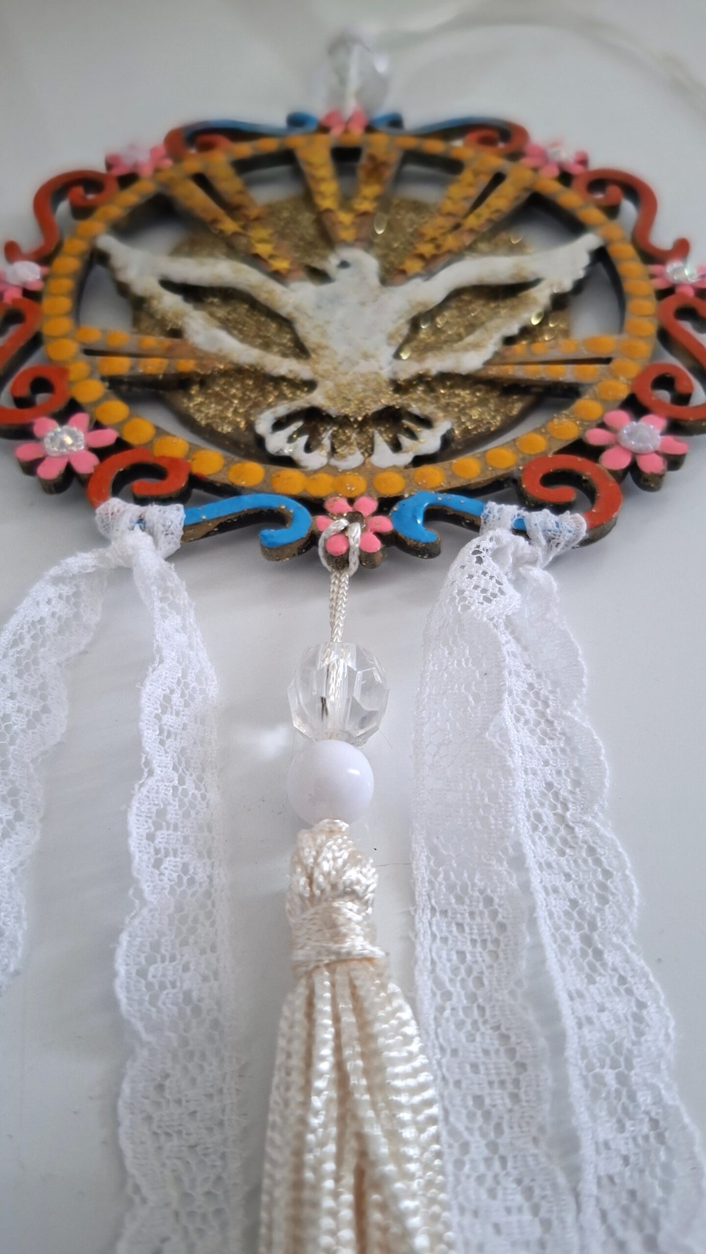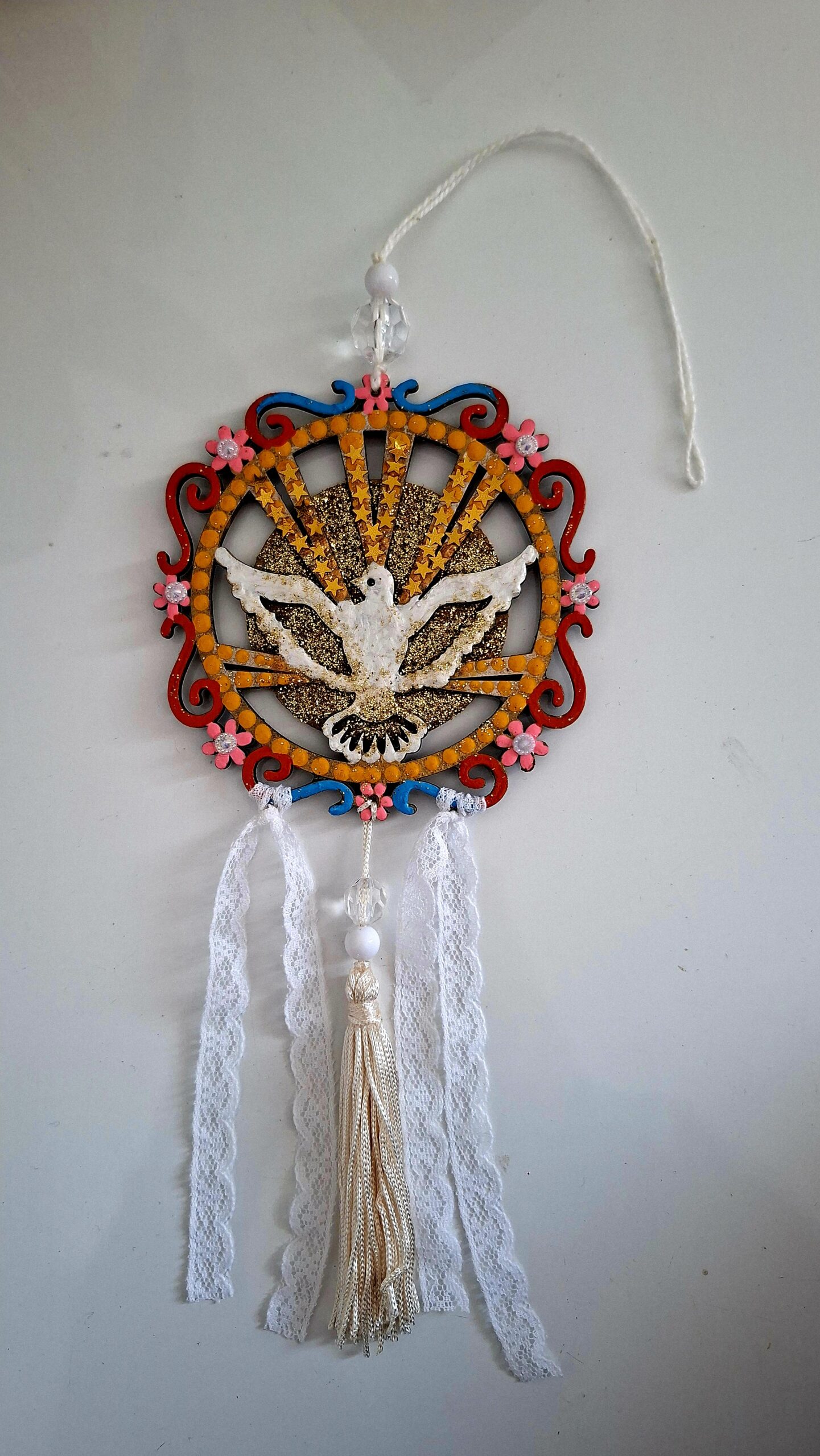 Amuleto em MDF pintado e envernizado.