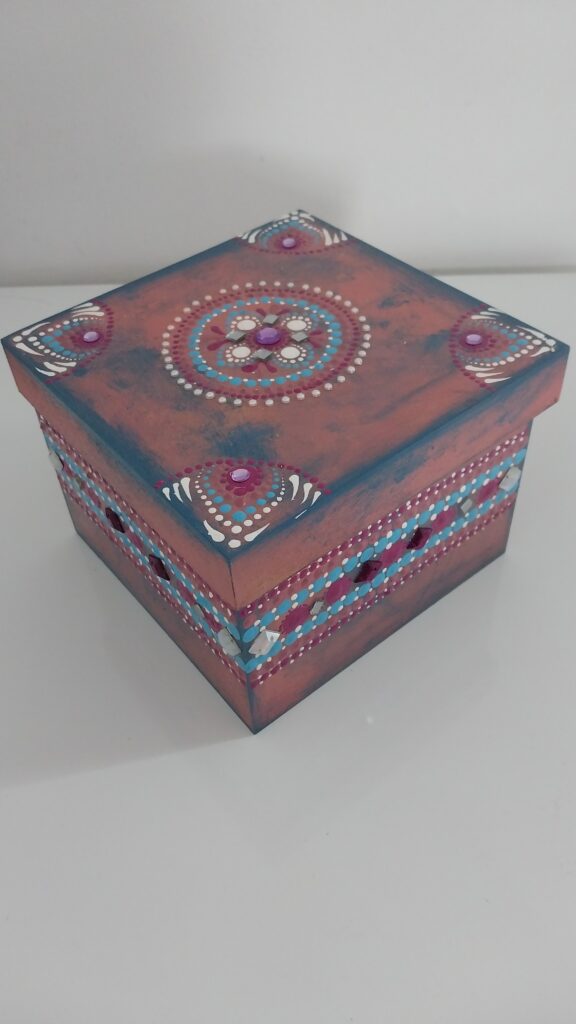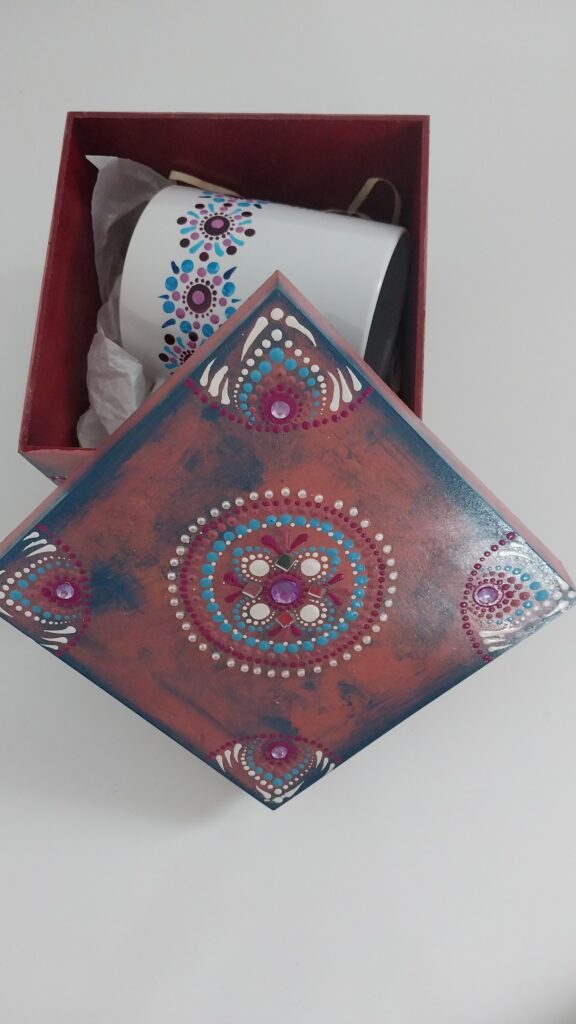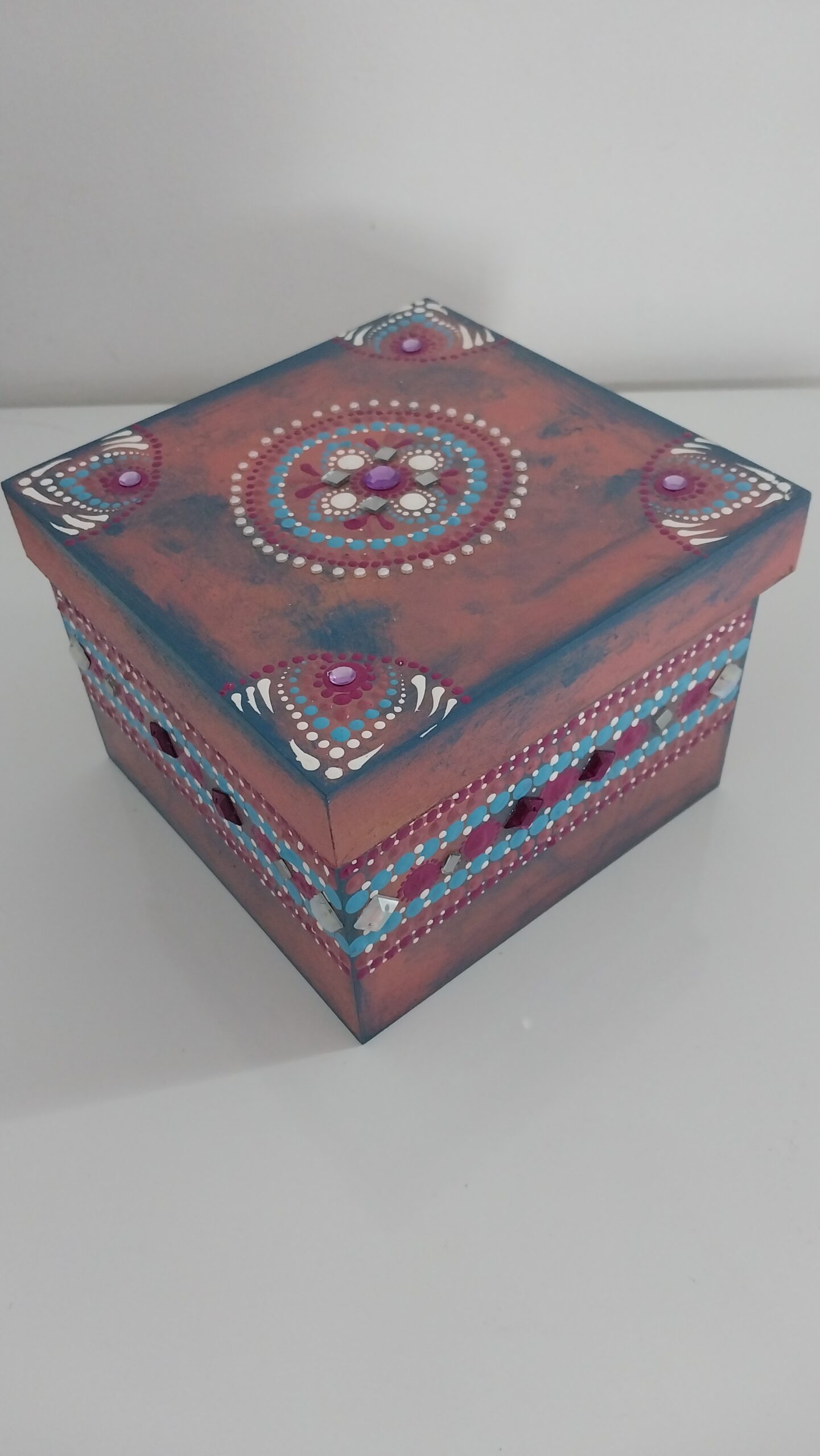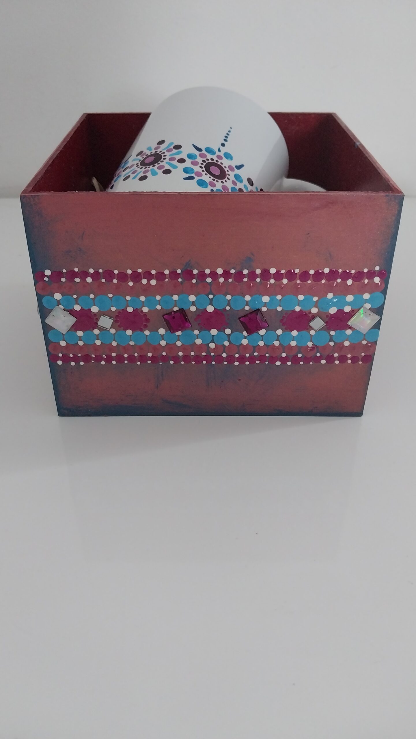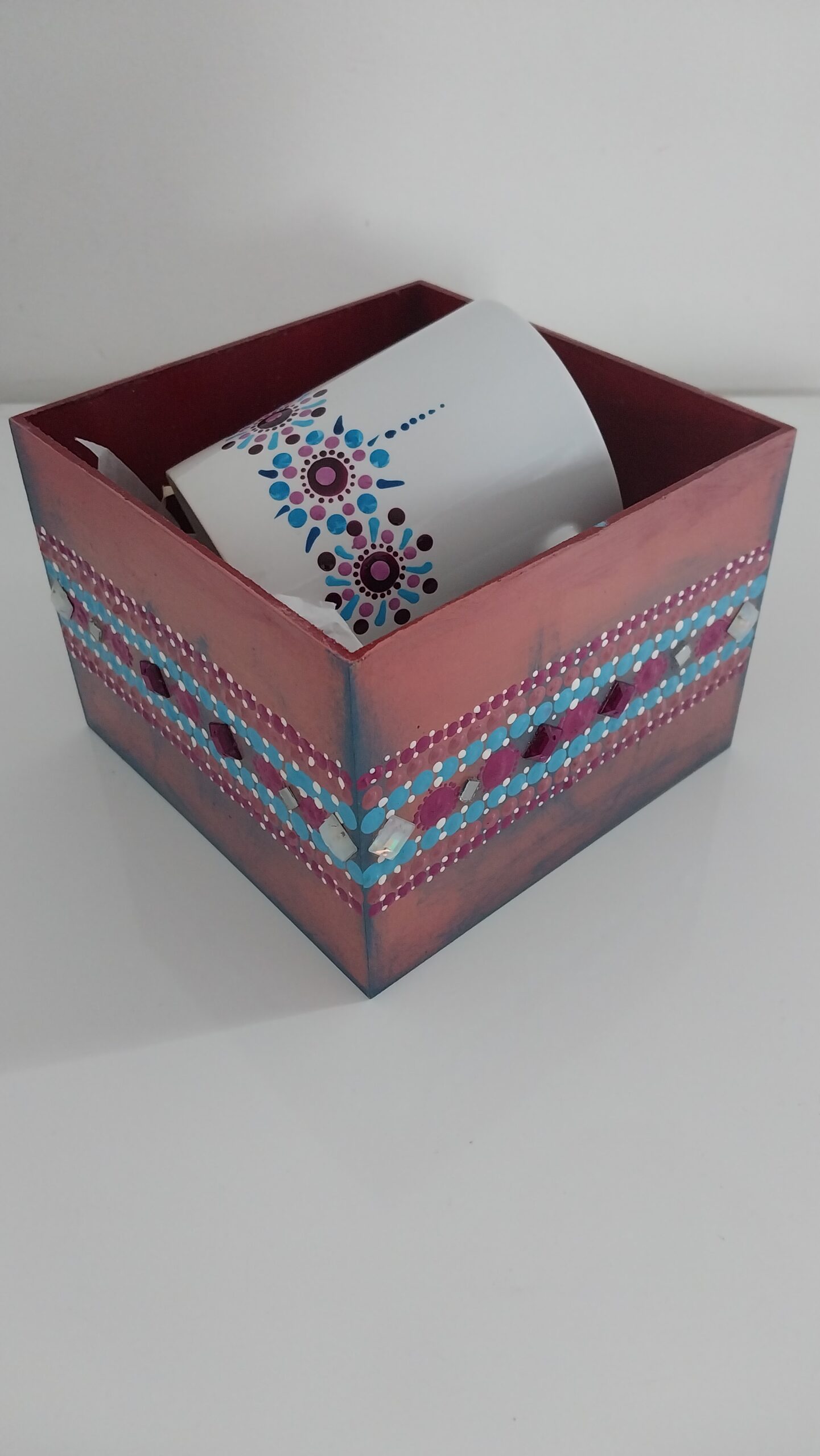 Caixa com tampa, em MDF, combinando com as cores pintadas na caneca.