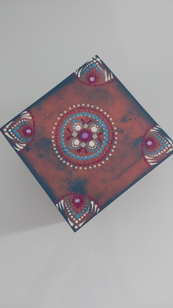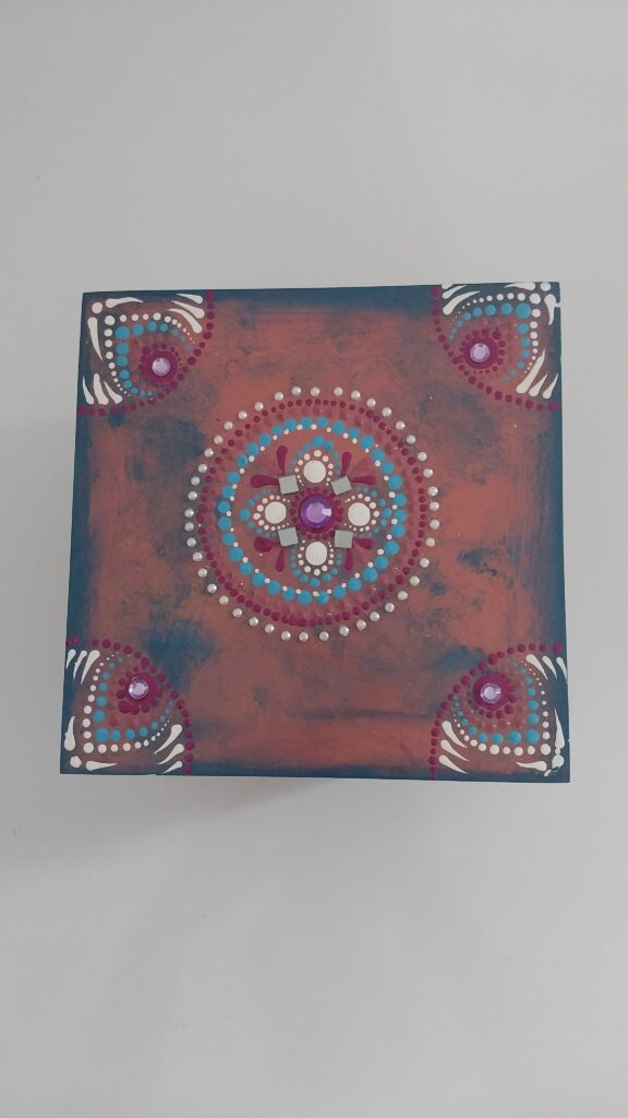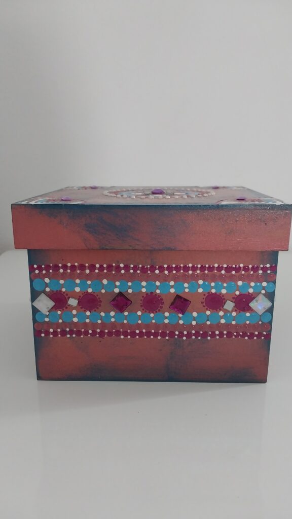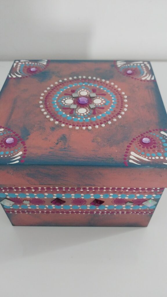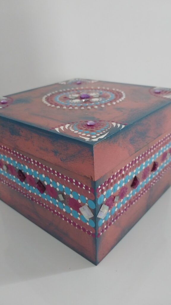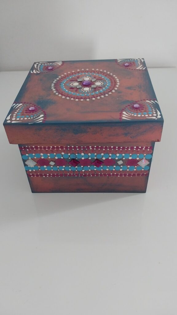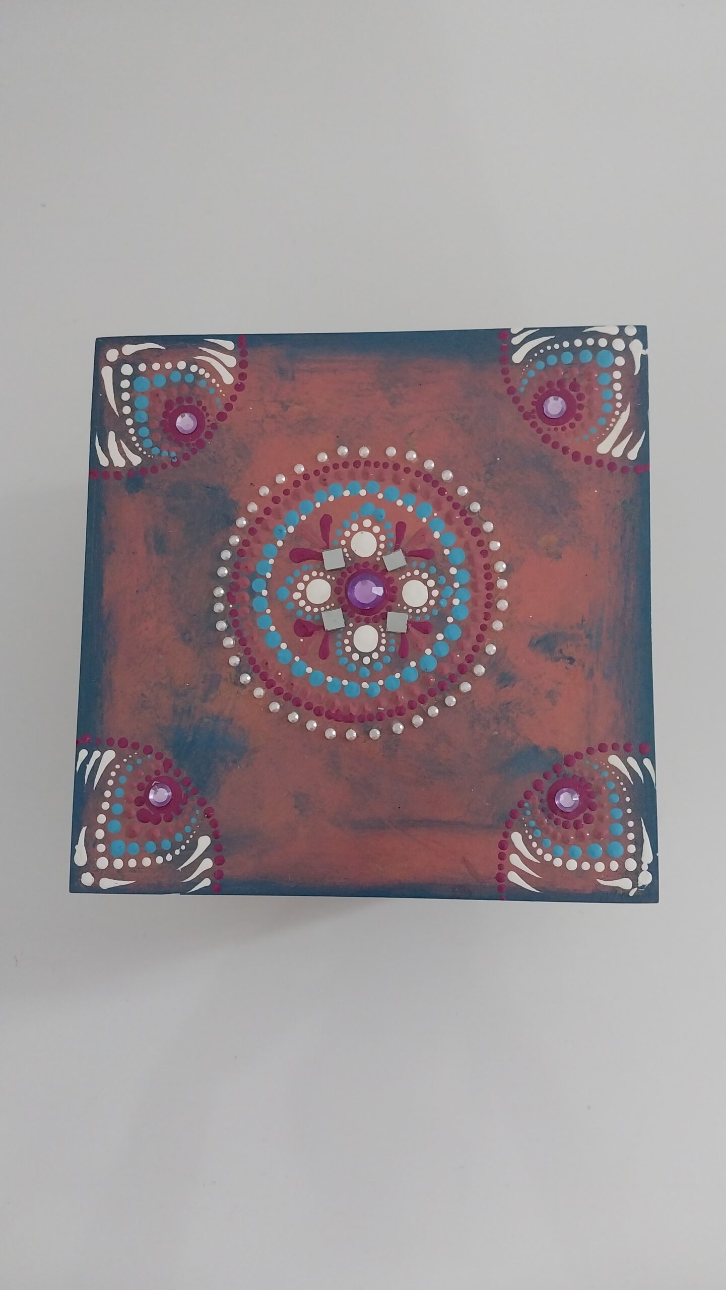 Caixa com tampa, em MDF, combinando com as cores pintadas na caneca.