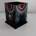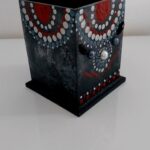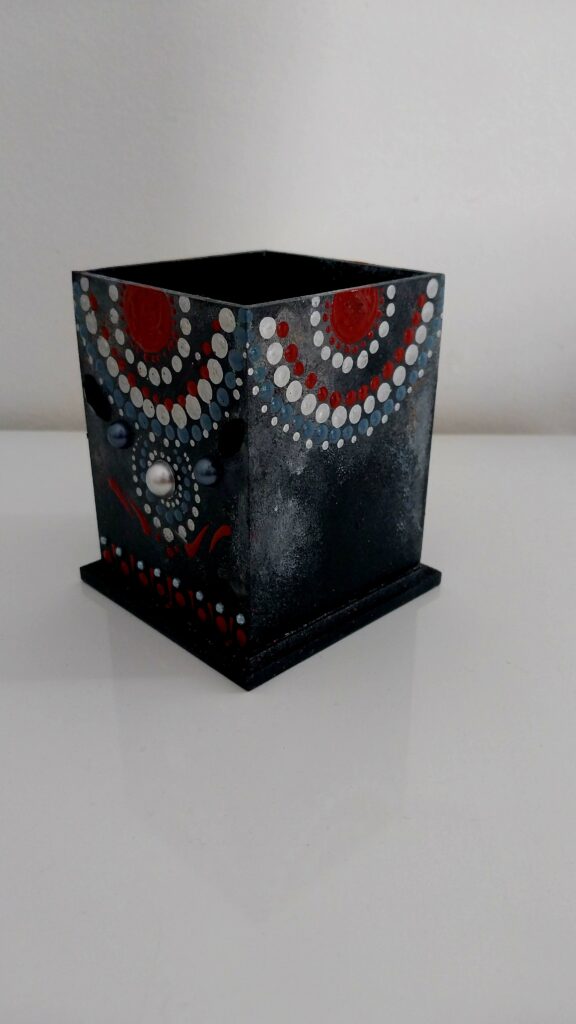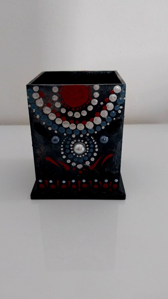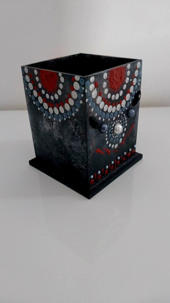 Caixinha sem tampa, pintada nos 4 lados, envernizada e com aplicação de cristal adesivo